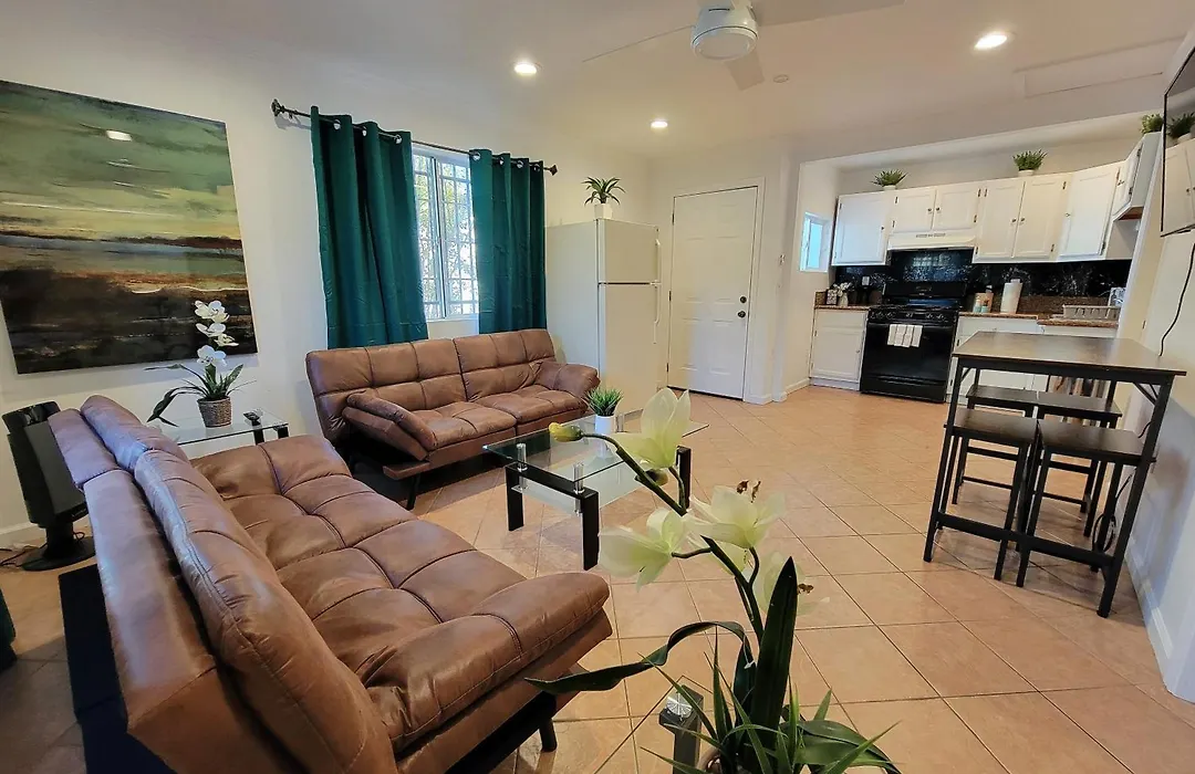 Situated 5 minutes' walk from Beth Jacob Congregation Orthodox Synagogue, the spacious 74 m² Beverlywood 2-Bedroom Suite - 5 Minutes To Rodeo Drive looks out onto the garden. The 1-bedroom apartment is nestled in the Beverly Hills district, while Town and Country Shopping Center is a 10-minute ride away.
